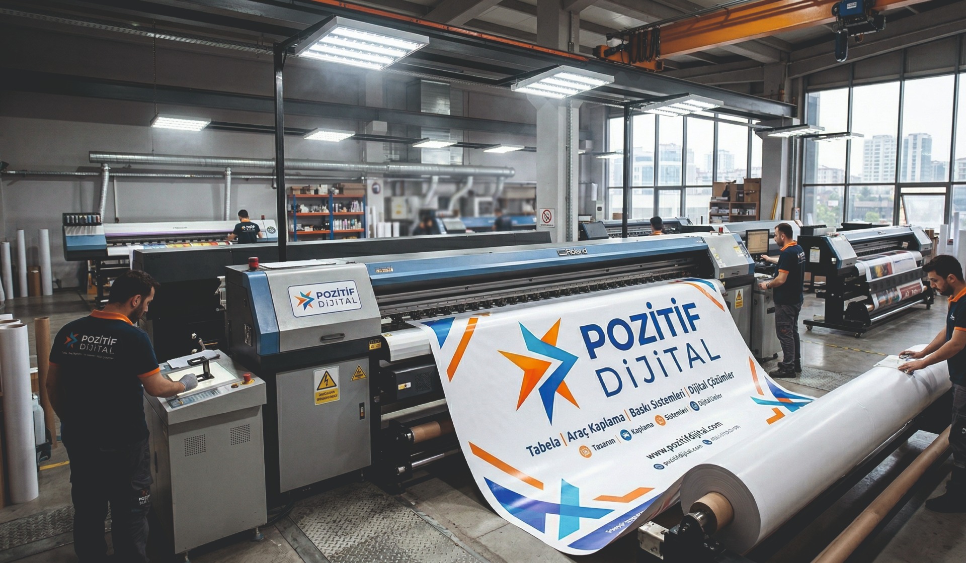 Büyük format iç ve dış mekan baskılarda; canlı renkler ve dayanıklı malzeme garantisiyle hizmet veriyoruz.